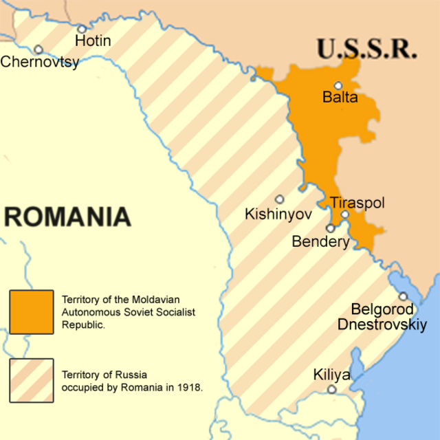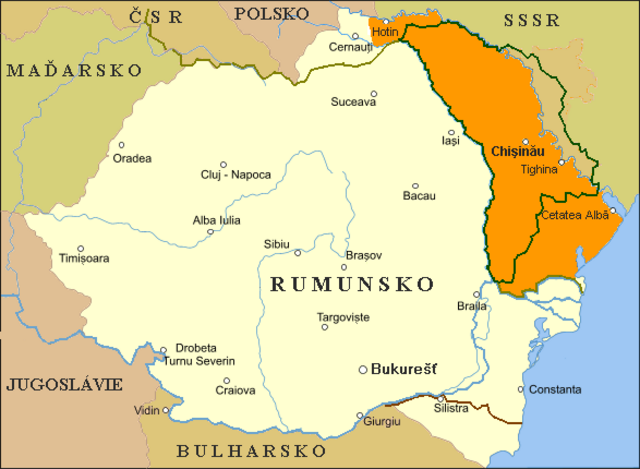The “Bessarabian question” undermined the relations between Romania and the USSR until the Second World War. In 1939, the Ribbentrop-Molotov pact set out the sharing of Eastern Europe between Nazi Germany and the Soviets. In this agreement, Bessarabia fell under the sphere of influence of the Soviet Union. On the 26th of June 1940, an ultimatum was sent by the Soviet Union to Romania demanding the return of Bessarabia and Northern Bukovina. Romania accepted the ultimatum and ceded the regions. This act, sometimes perceived as a surrender in Romanian historiography, was realistic, considering the geopolitical situation of the country. In June 1940, the Kingdom of Romania faced domestic unrest. The legitimacy of King Carol II and the policies of his ministers were contested by nationalist organisations with a pro-German stance, such as the Iron Guard. Moreover, Romania was more isolated than ever on the international scene as its allies (France, England and Poland) were no longer present to protect the country from the ambitions of its neighbours. Moreover, as the Romanian army was aware of the important gap in forces with the Red army, they accepted the Soviets' demands.[25]